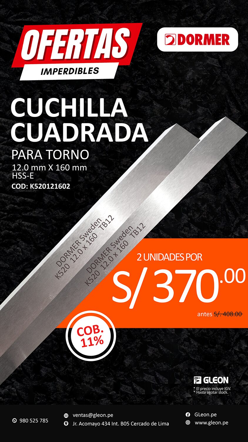 PACK X2 CUCHILLA CUADRADA 12X160MM HSS-E CO11% K520 DORMER